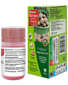 На сегодняшний день это самый эффективный препарат от колорадского жука. Престиж работает против сосущих вредителей, проволочника, медведки, тли и других насекомых до 50 дней. Препарат до 40 дней действует на болезни: ризоктониоз, паршу, корневые и прикорневые гнилей.